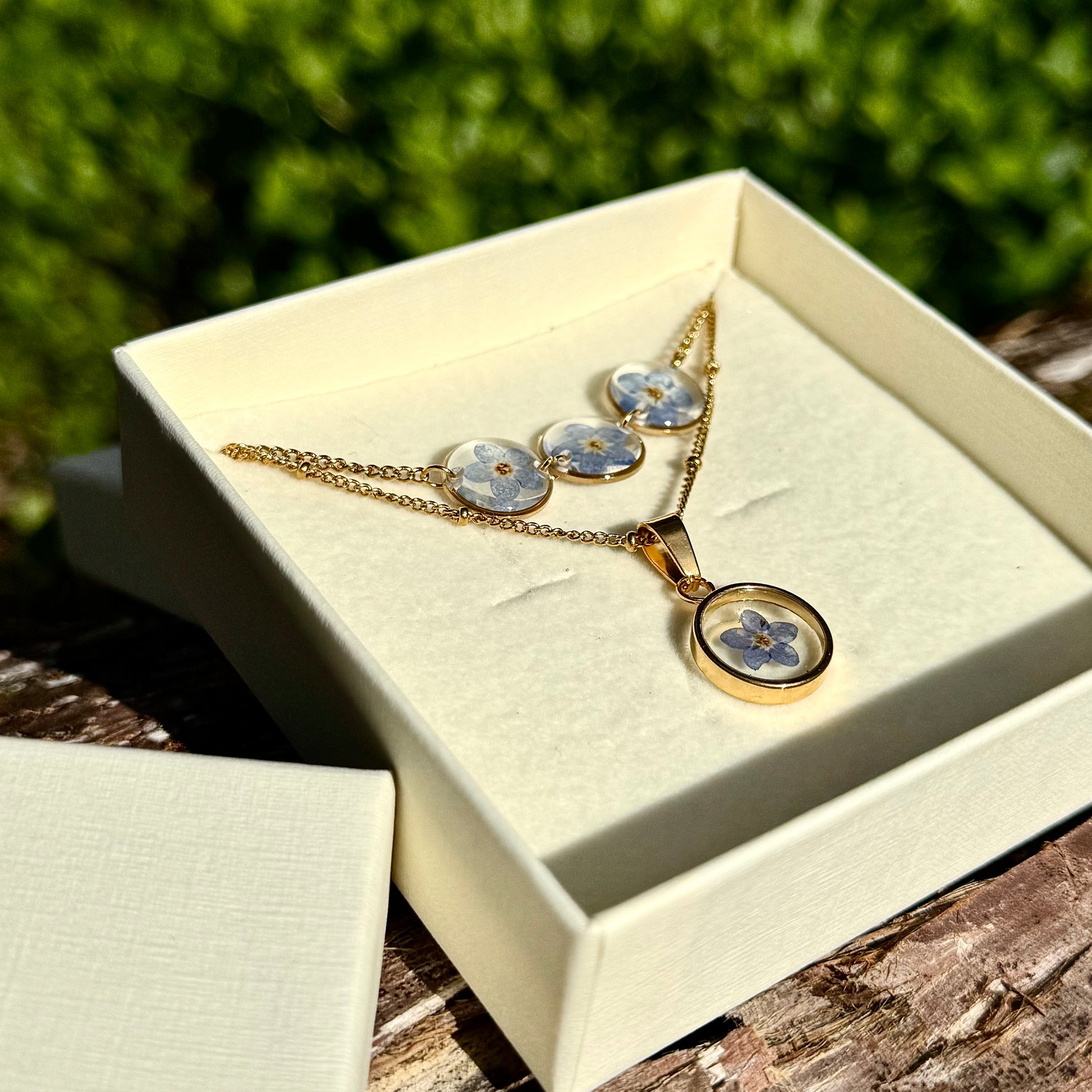 Todas as nossas joias são feitas à mão com flores secas reais, resina e aço inoxidável! Cada peça é única e feita para durar para sempre!